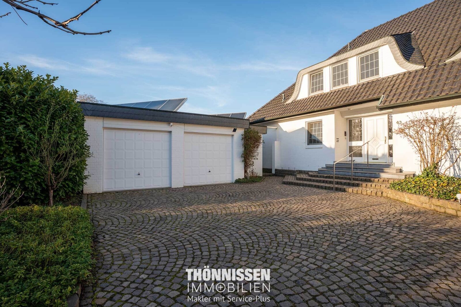 Vor dem Haus steht eine großzügige Doppelgarage zur Verfügung in der bequem zwei Fahrzeuge Platz finden. Zusätzliche Stellplätze befinden sich auf der gepflasterten Fläche vor dem Haus.